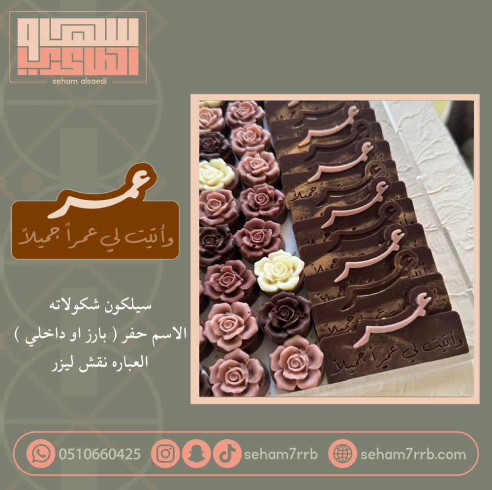 مؤسسة سهام الصاعدي لبيع جميع مستلزمات الطباعه على الشكولاته من قوالب اكريلك وقوالب سيلكون وطابعات واوراق ترانسفير واحبار غذائية وغيرها